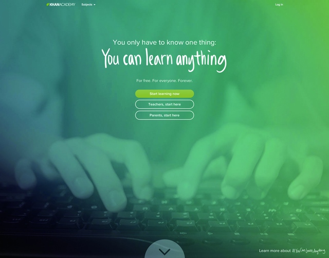 翻轉教育的濫觴,是一個免費的教育資源網站,也是目前全世界使用率最高的24小時「網路家教」。比爾‧蓋茲和Google員工的孩子都曾受惠。可汗學院網站最著名的,是數千支各10分鐘的數學、科學、歷史、藝術等教學影片(內容符合從小學到大學的程度),以及搭配的互動式習題。只要登錄上網,就可獲得一張個人專屬的「知識地圖」,提醒你還可以挑戰的領域,也留下一份個人的學習紀錄:在哪一題花了多少時間?哪類練習重複做了幾次?2013年時,每月都有1,000萬名使用者,至今可汗學院影片的觀看率已超過4億6,000萬次。