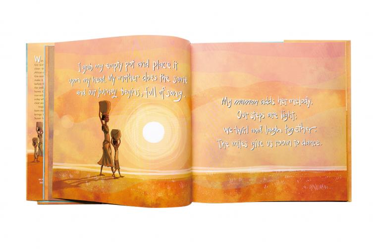 坦尚尼亞缺水問題,和台灣雨水豐沛卻缺水成最佳對照,在故事中讓孩子們理解他國取水不易,甚至得犧牲性命,省思與珍惜滴滴涓涓得來不易的水資源。