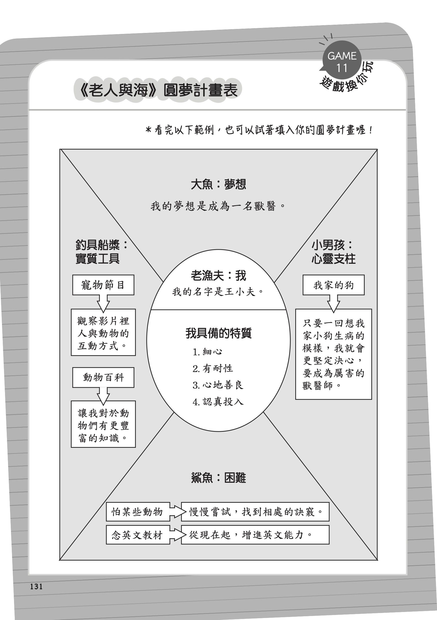 《老人與海》圓夢計畫表:看完以下範例,也可以試著填入你的圓夢計畫喔!