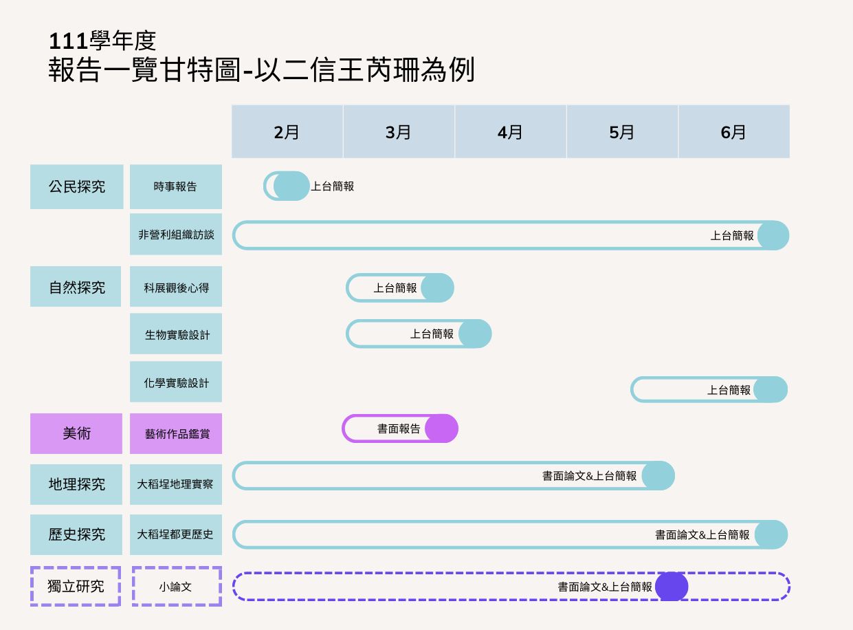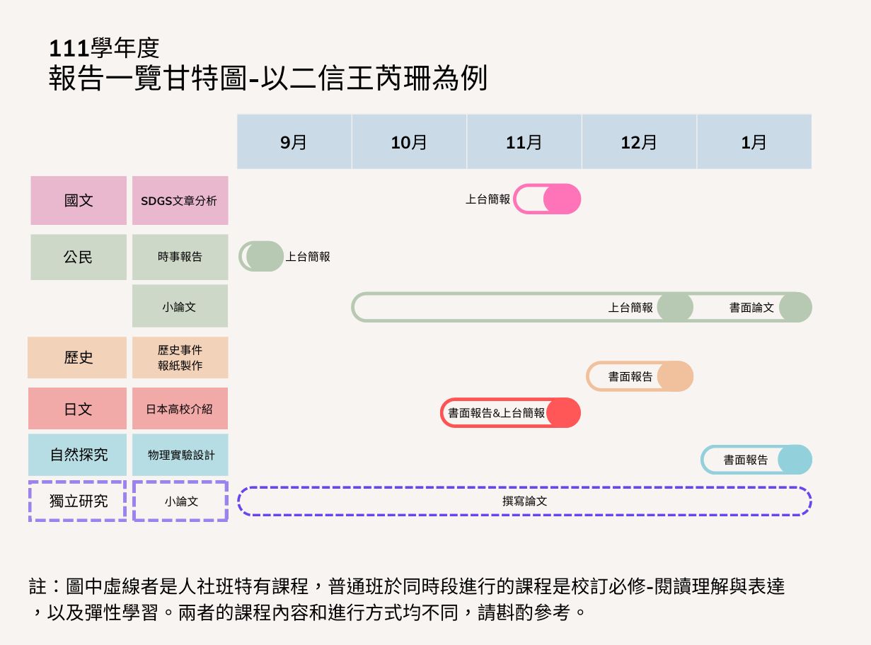 111學年度報告一覽甘特圖。圖片提供:劉語雯、王芮珊、鄭愷元、黃瑞函