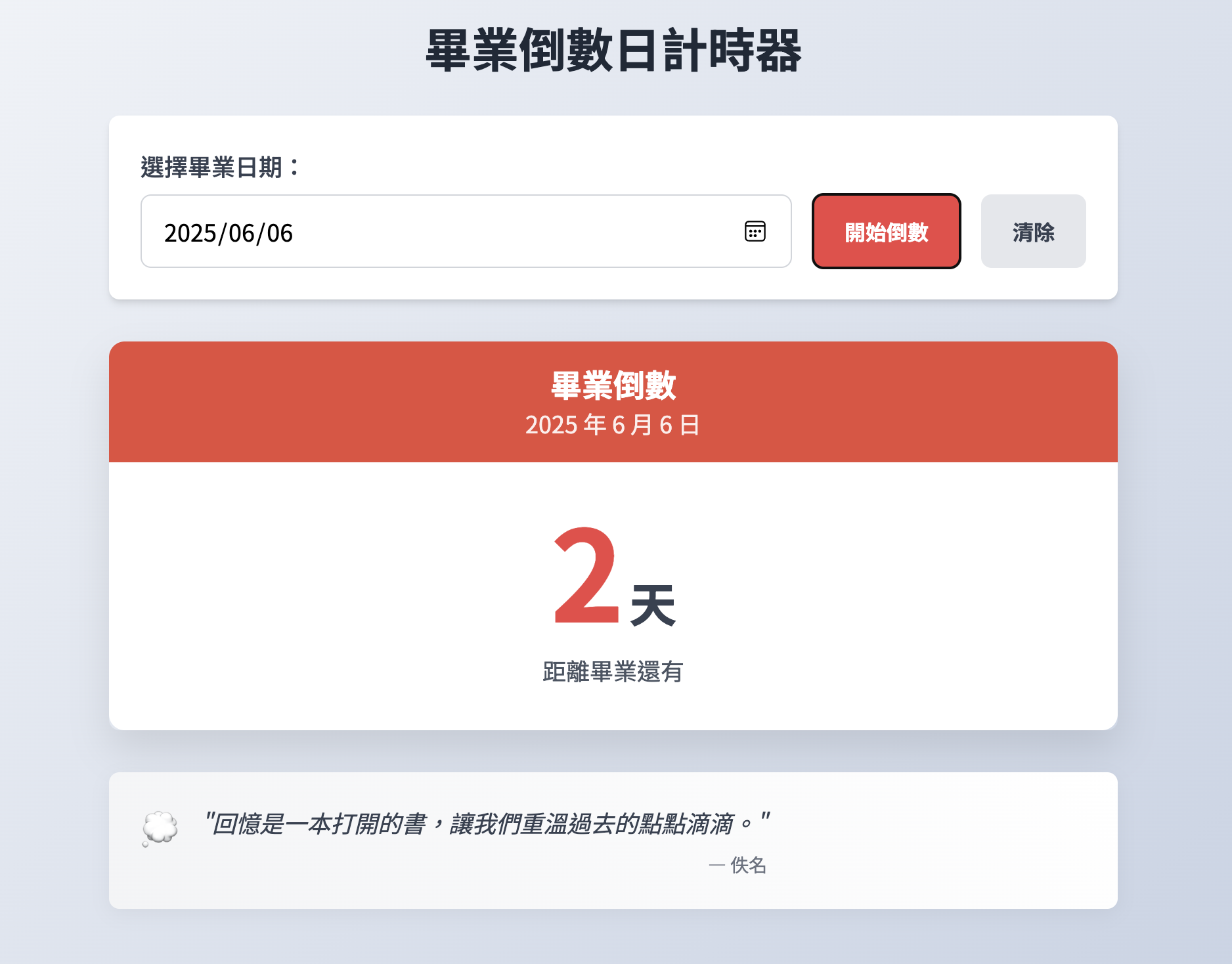 CANVA AI 自製班級經營小工具:畢業倒數日計時器。圖片截取自陳佳釧老師自製小工具。