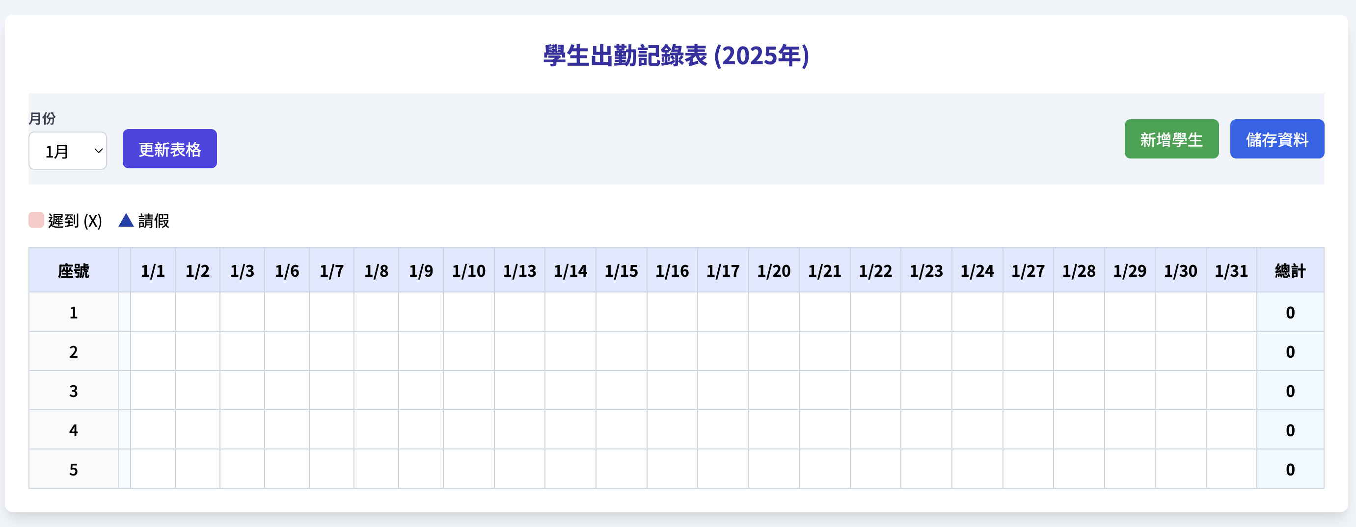 CANVA AI 自製班級經營小工具:學生出缺席紀錄表。圖片截取自陳佳釧老師自製小工具。