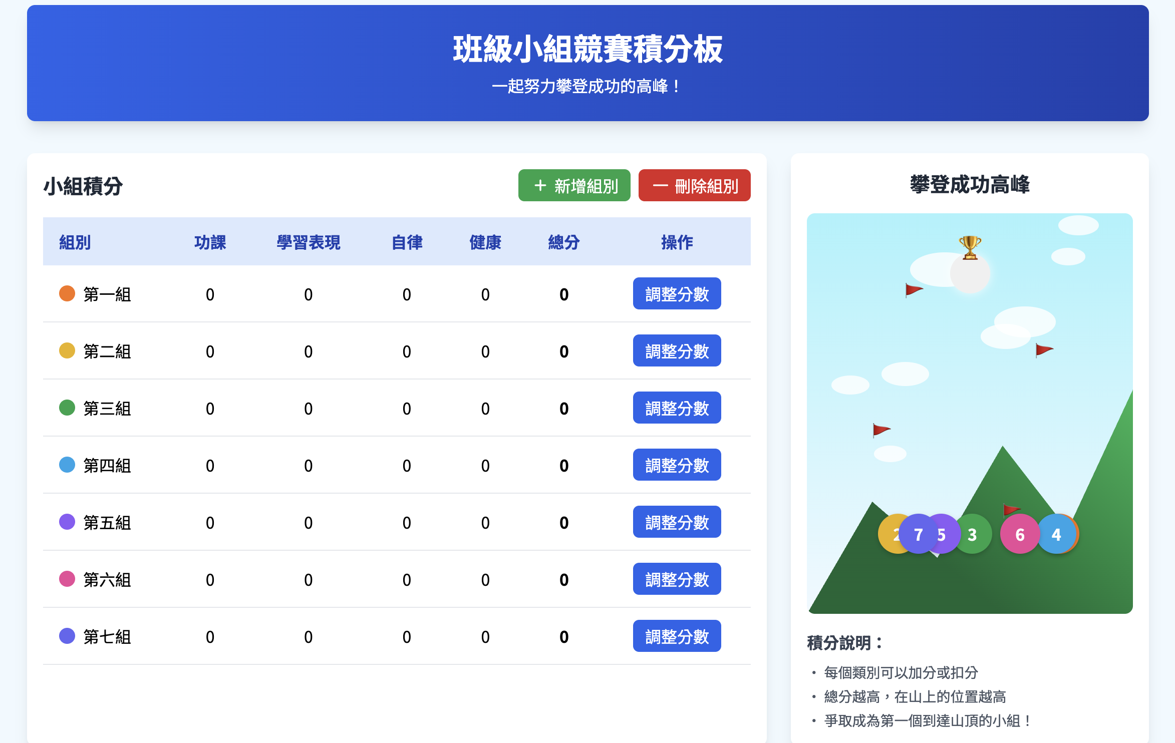 CANVA AI 自製班級經營小工具:小組競賽。圖片截取自陳佳釧老師自製小工具。