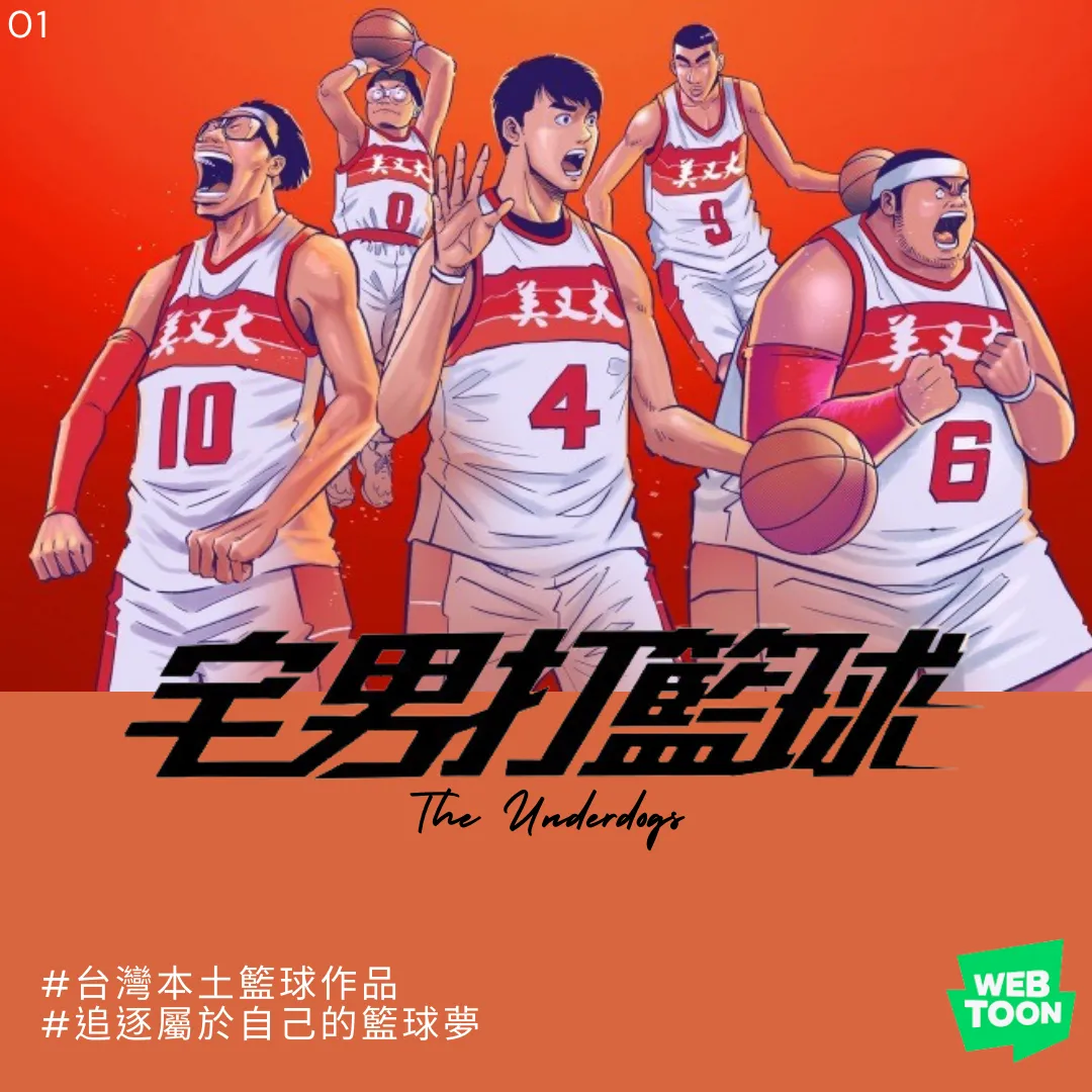 《宅男打籃球》在網路漫畫平台 WEBTOON 已經連載十年,漫畫主角周大華原本是校內風雲人物,但成年後的諸多不順,讓他變成了頹廢宅男。不過,在因緣際會之下,他和一群沒有辦法像國高中生一樣天天專心打籃球的成年宅男們,組成「美又大」籃球隊,勇闖全國籃球賽。