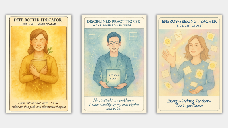 《你是教學現場裡的哪種無名英雄?》測驗結果類型。圖:ChatGPT生成