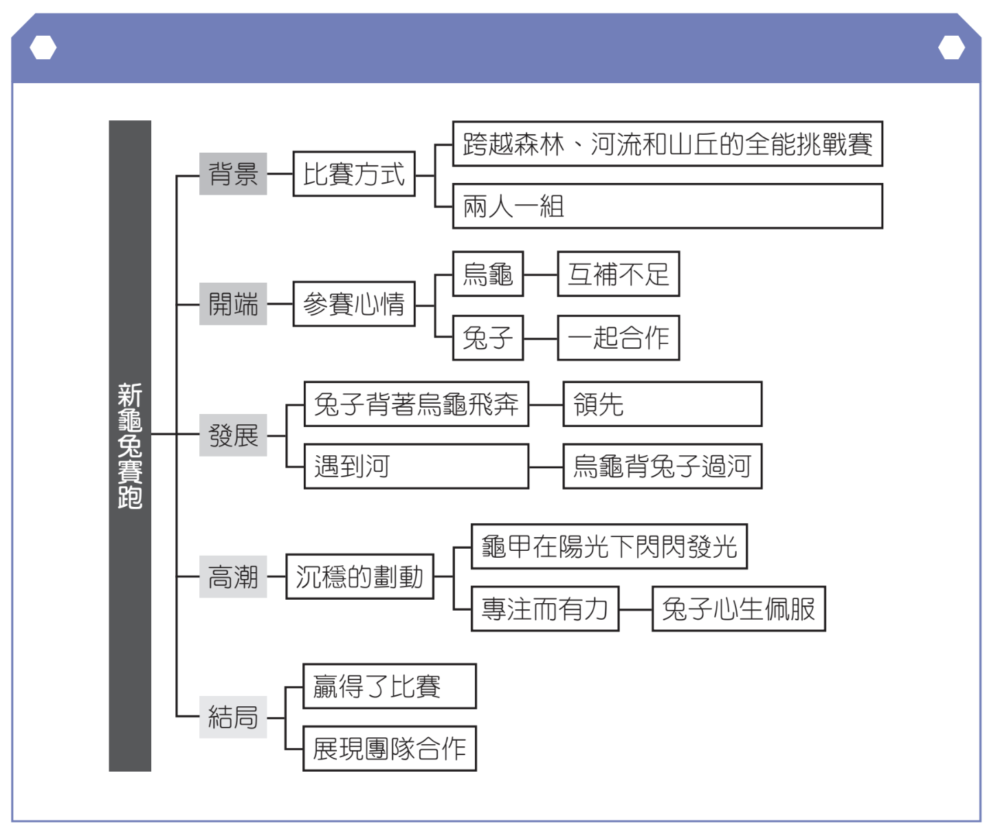 1. 教師先請學生們說一說經典的龜兔賽跑故事,再和同學分享改編版的故事(如下):