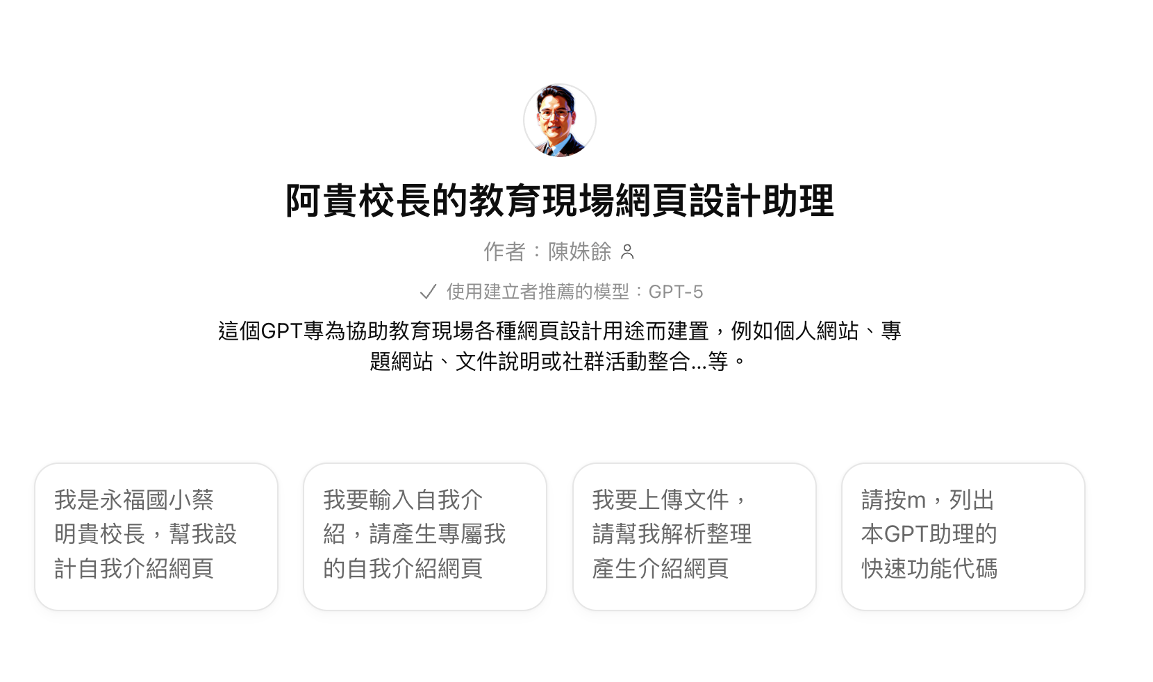 就在開學前夕,我決定寫一個小工具,算是替現場「還債」。這個工具是一個網站設計 GPT 助理,專門為教育人員打造。