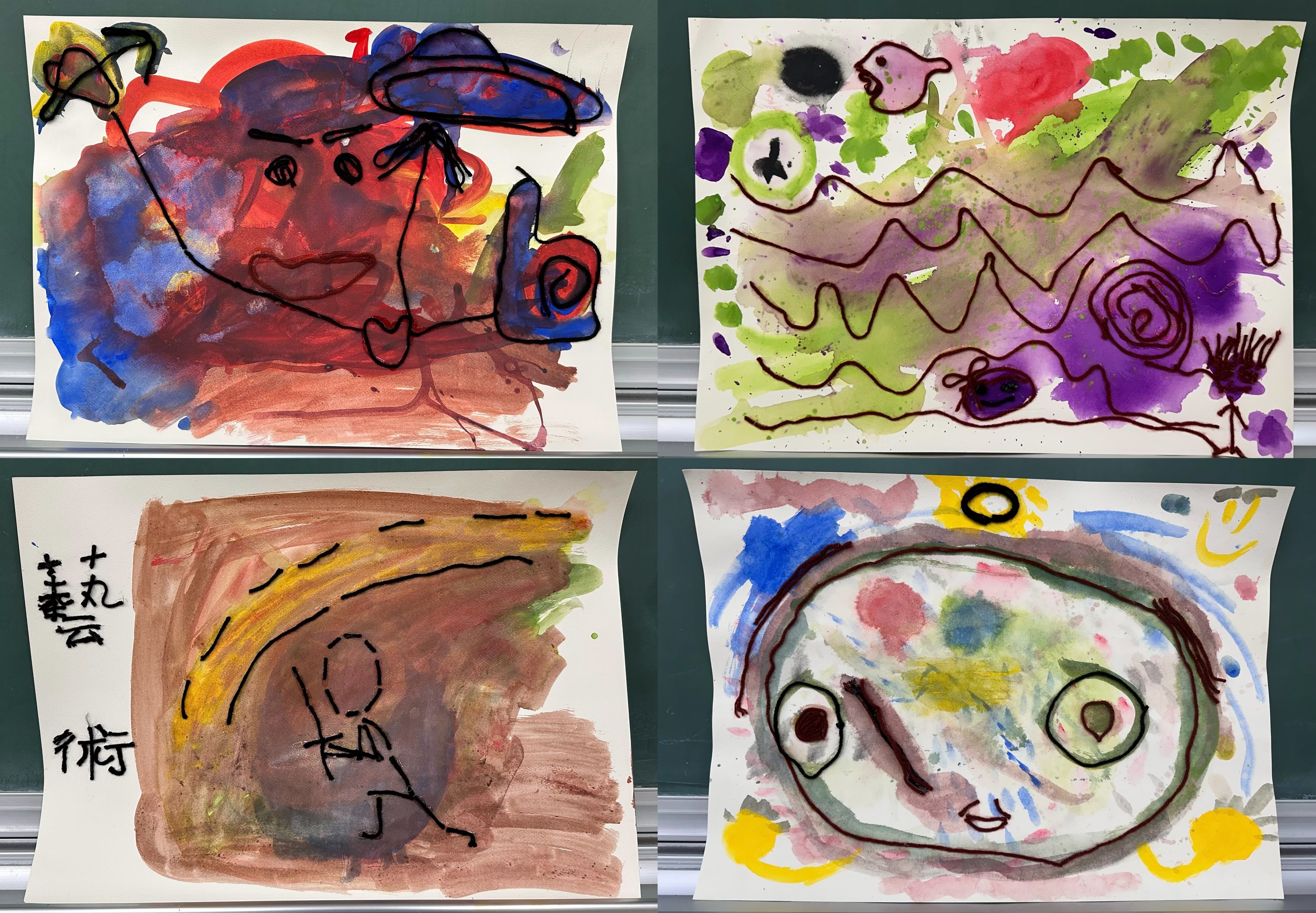 神奇的事情發生了:孩子們開始觀察自己的作品,在沒有限制的情況下,用毛線和水彩紙上的圖案做出聯想互動,這不是對第一次作品的補救,而是讓孩子們學習在舊的狀況中,無論滿意或不滿意,都可以發現新的思維產生不同的結果。