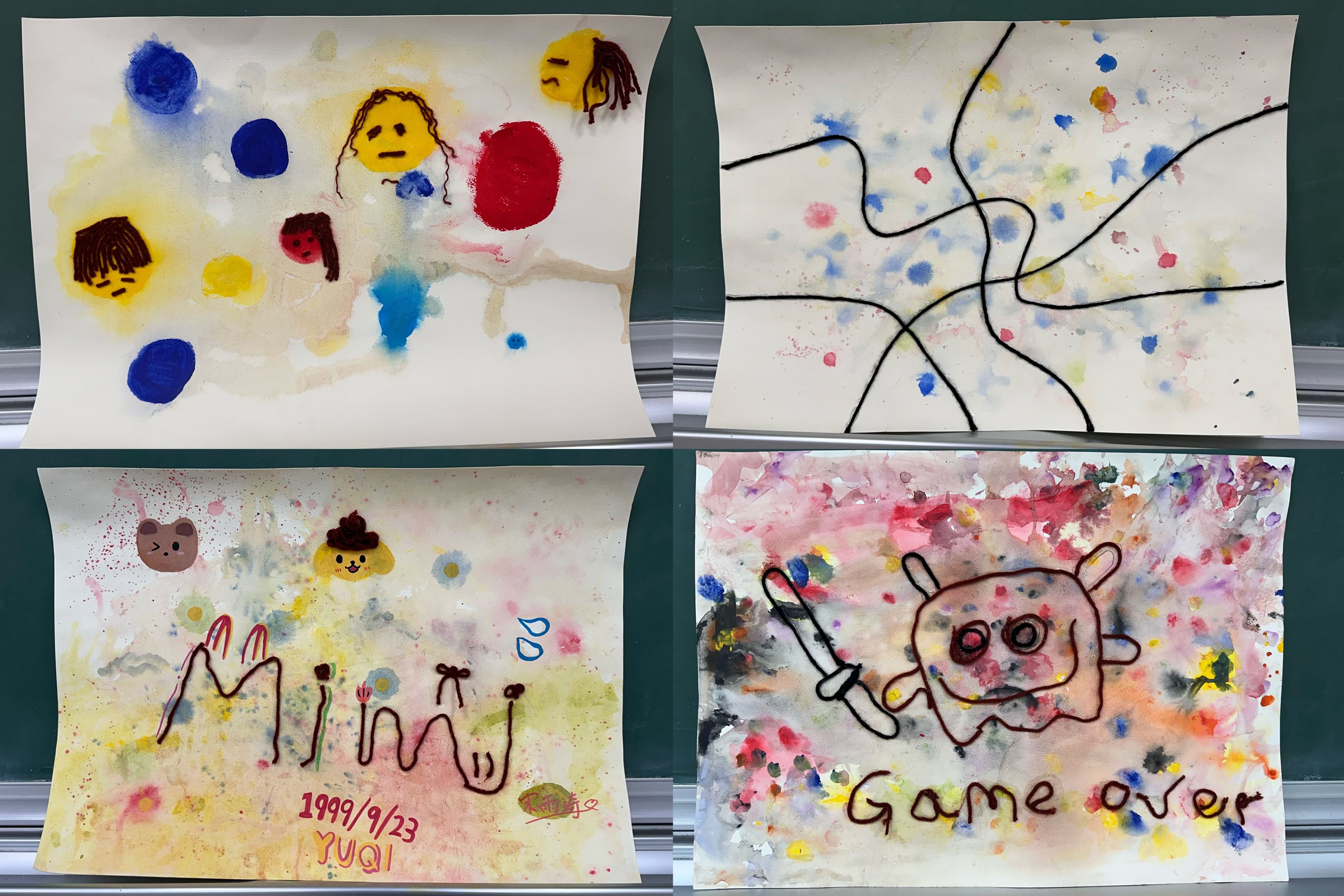 甚至原本覺得自己作品「很醜」的孩子,竟開始認真觀察,並在既有的色塊上找到新的可能。有的用毛線勾勒輪廓,有的延伸圖案,將「不滿意的過去」轉化為創造的契機。