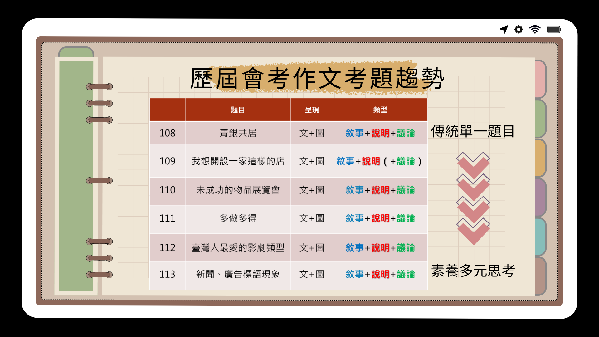 歷屆會考作文考題趨勢。圖:蔡思怡老師整理