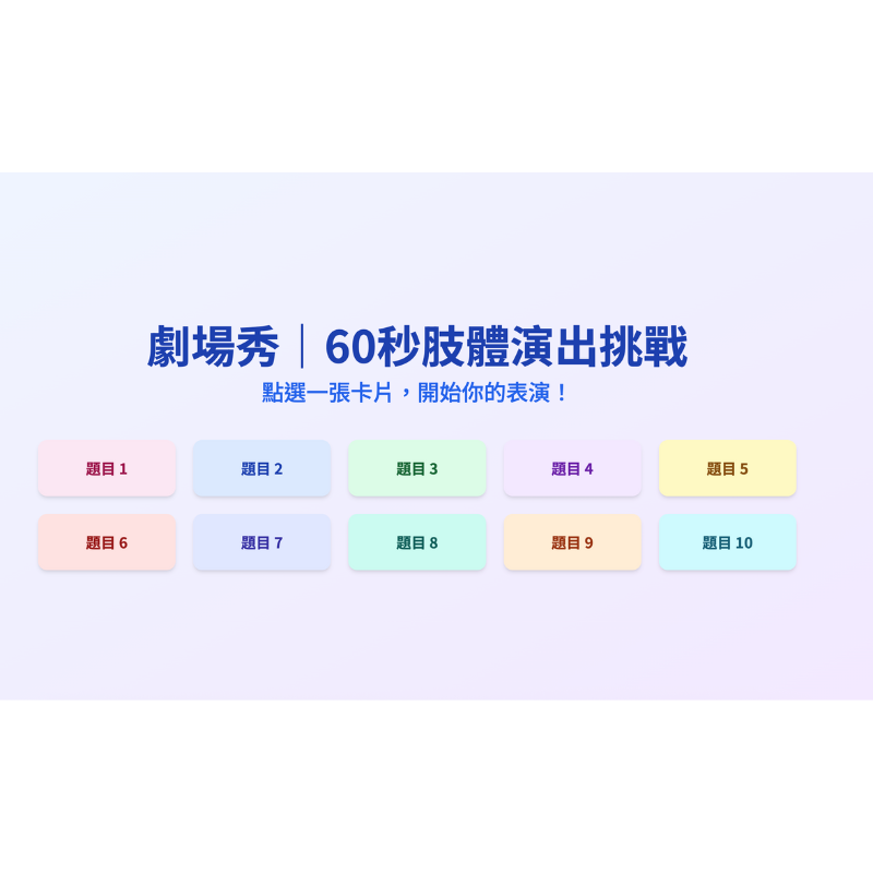 本教材提供 PowerPoint 簡報版、Canva 可編輯版本與 Canva 網頁互動版,操作簡單、自由彈性。 教師可直接使用現成題目,也可依班級需求自行修改內容與題型,應用於期末回顧、綜合活動、團康活動等不同場景。建議以小組競賽方式進行,利用投影進行互動式選題挑戰,無需額外器材,立即上手。Canva 網頁互動版亦適合用於數位課堂,透過點擊操作進行互動,兼顧教學與科技應用。