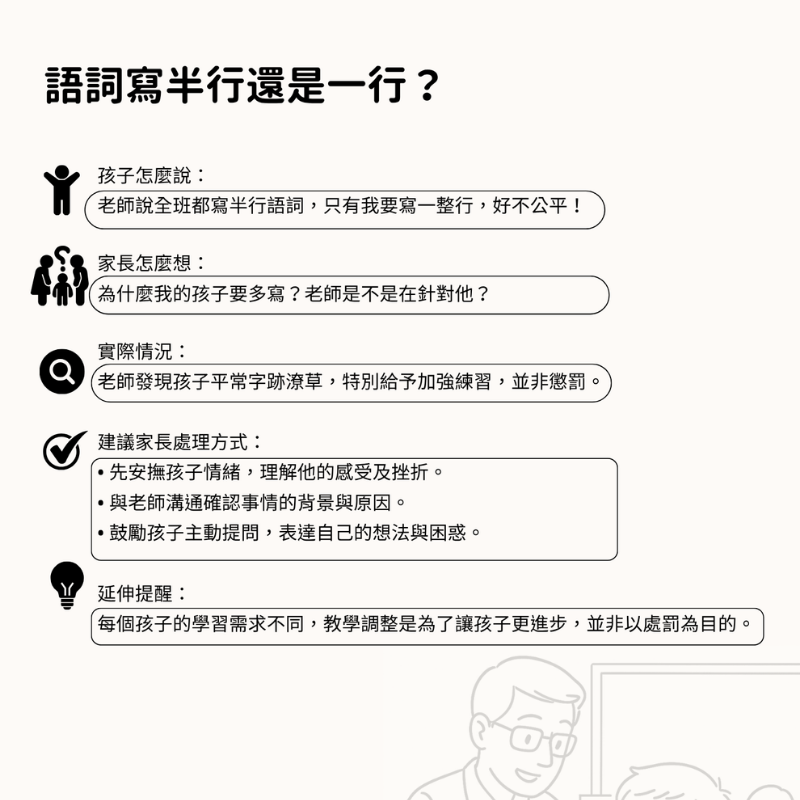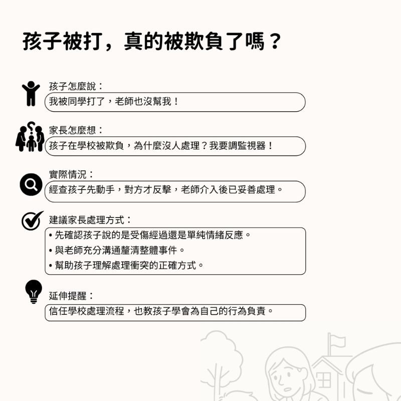 與老師溝通前的整理工具:先釐清孩子所說是否為完整資訊,避免誤會加劇。