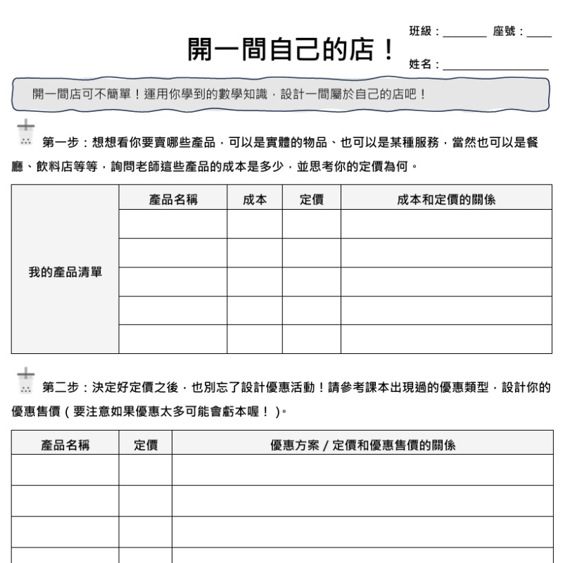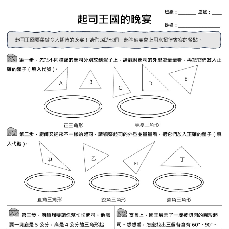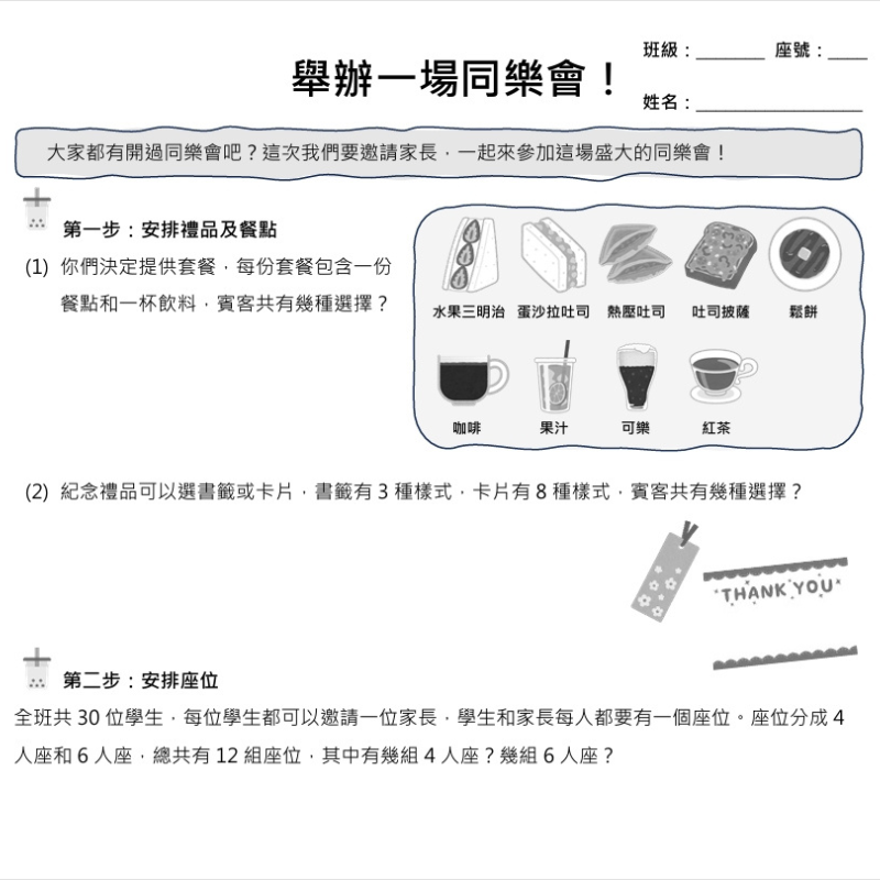 這份教材是針對四到六年級學生比較容易卡關的單元所設計,用主題包裝、遊戲化的方式將數學概念融入日常,學生不僅可以透過學習單的活動體驗實際生活情境,也可以進行趣味的數學學習,希望能為寫題目的過程帶來一些樂趣和生活啟發。