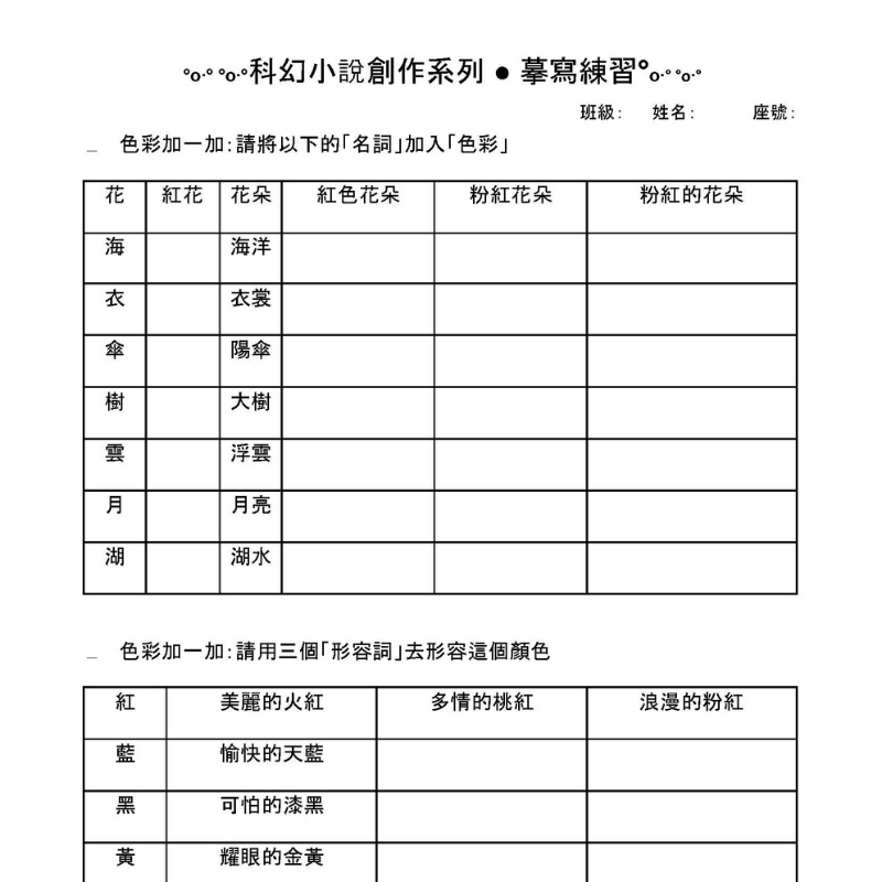 - 摹寫練習單:色彩+形容詞+意象組合,奠基表達能力