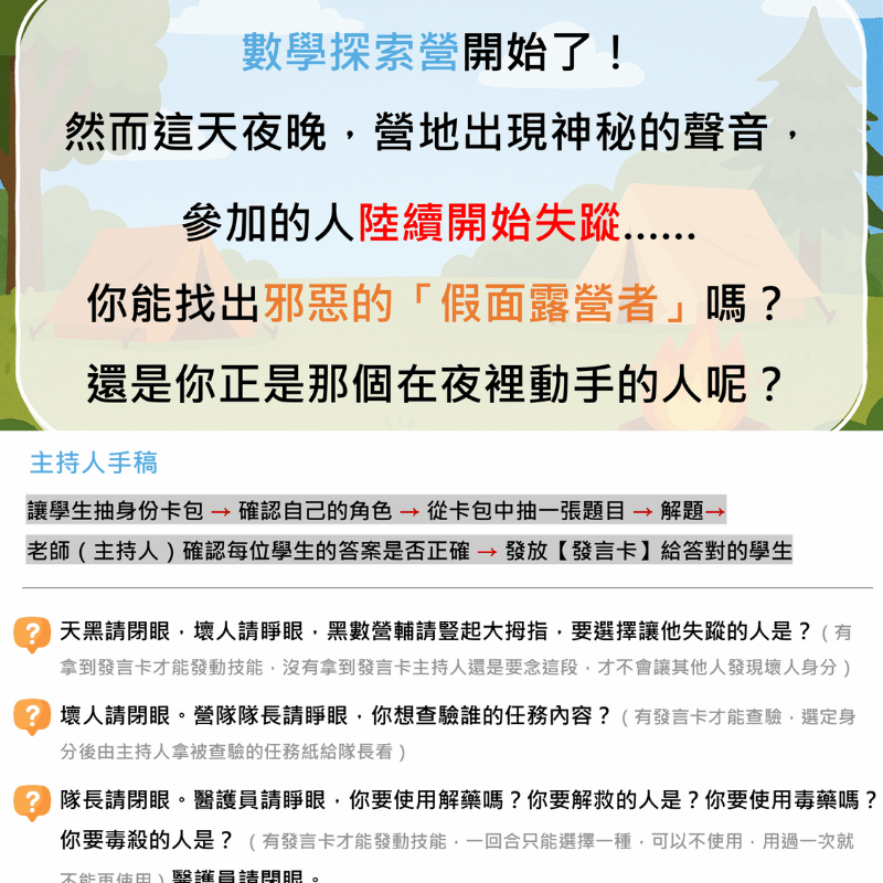 數學學習扶助教材|數學狼人殺:營地謎影(國小中年級適用)
