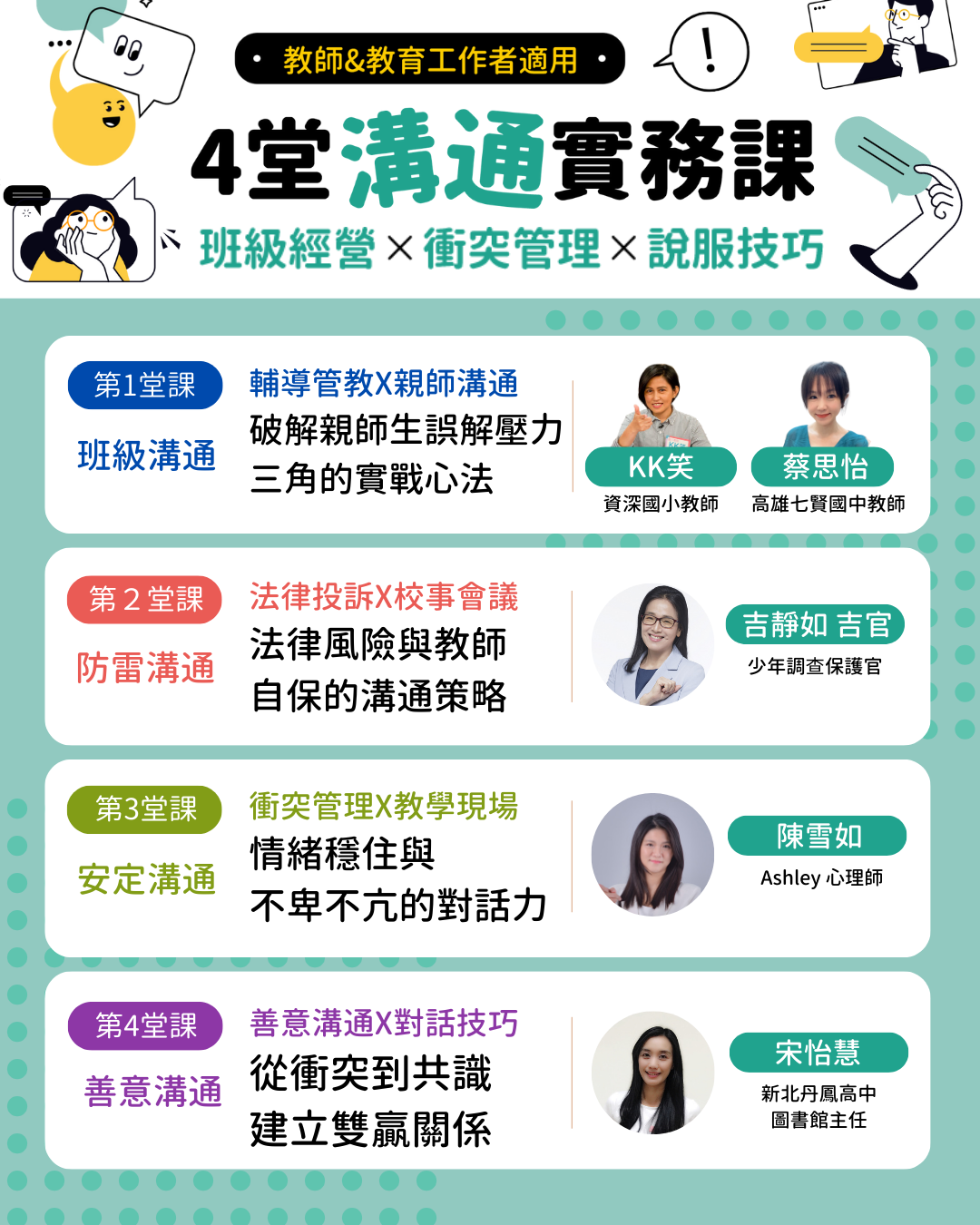 這門課從四大情境出發, 破解溝通難題, 融合法律、心理學與真實案例,