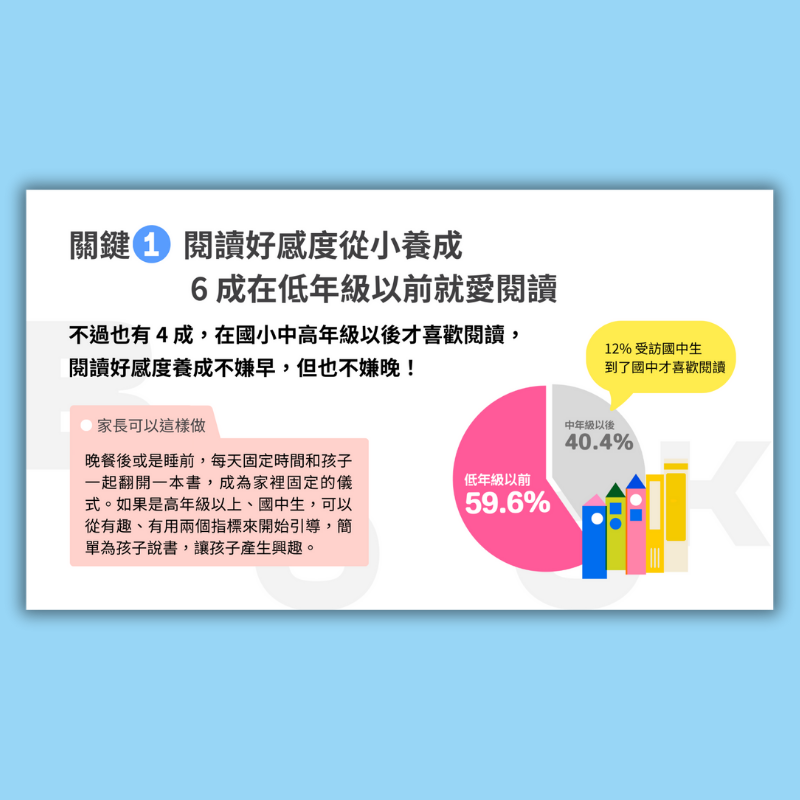 - 班親會分享給家長:透過調查數據,幫助家長理解陪伴孩子閱讀的重要性,並提供具體做法。