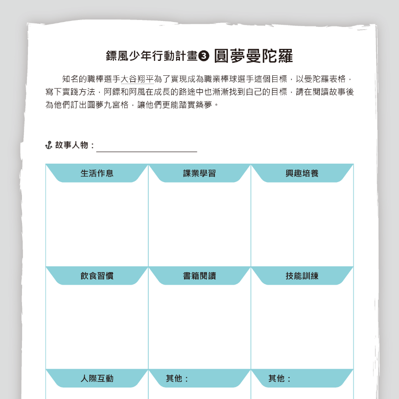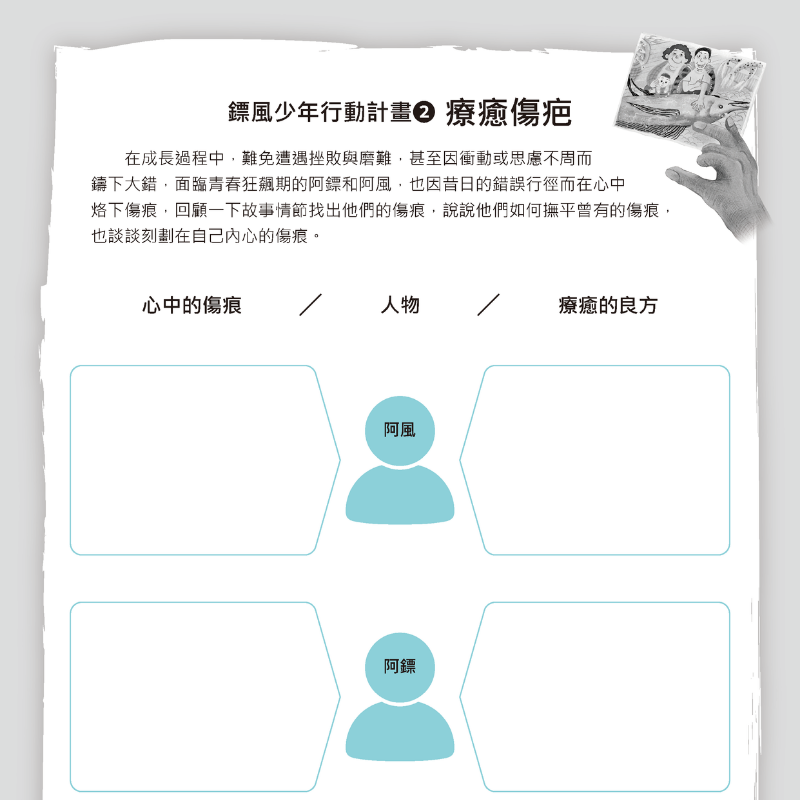 使用說明|這份資源提供《鏢風少年》試讀文本,並附上學習單設計。建議閱讀完整故事後搭配學習單使用,透過角色和劇情引導提問幫助孩子思考,並帶孩子一同發想未來的目標。