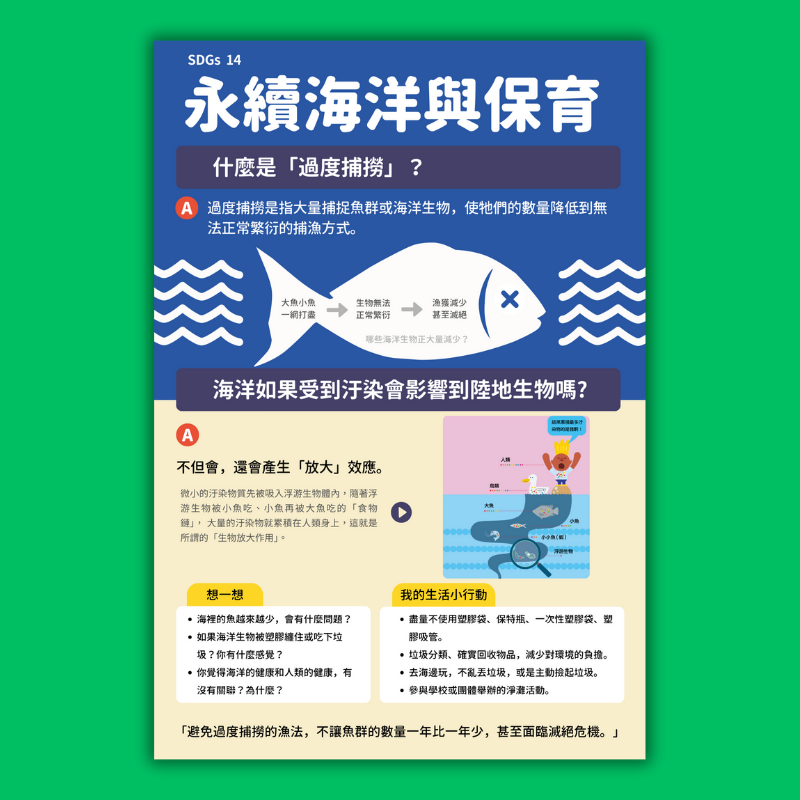 - 行動建議:每張海報搭配「我的生活小行動」,提供具體可行的行為指引,幫助學生從小養成永續習慣。