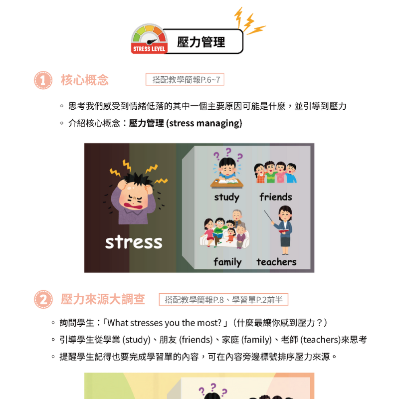 - 與學生討論「壓力看起來像什麼」,培養想像與表達。