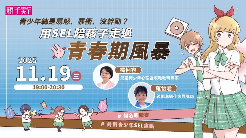 報名講座即贈13歲就開始系列書籍《給中學生的SEL社會情緒學習指南》或《給中學生的衝突管理術》任一本,可於方案處選擇,若兩本書籍都想要,可選擇「兩本一起帶」方案。